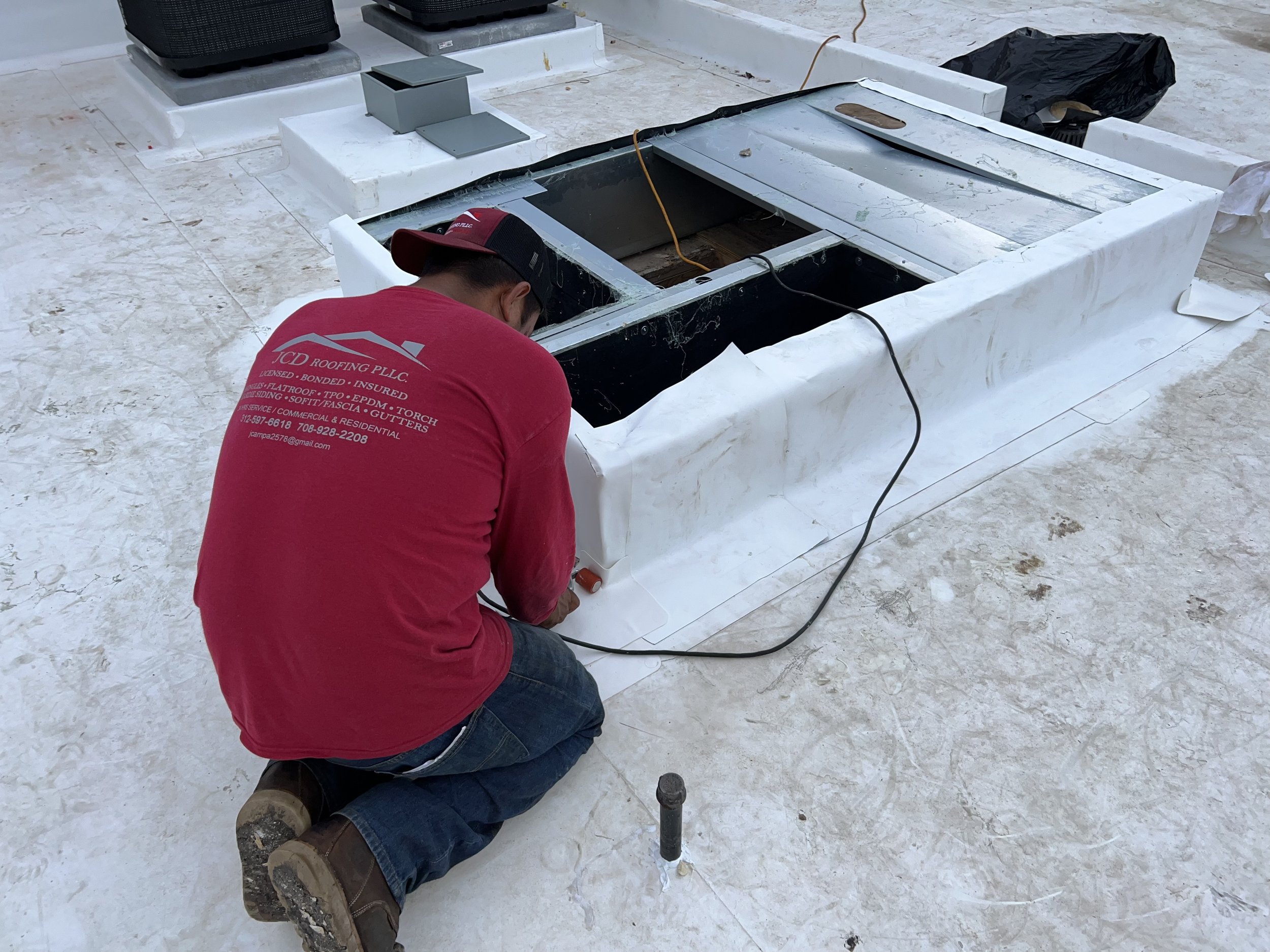 The roofing professionals who are responsible for flashing a protrusion on a TPO roof must also have a high level of expertise in TPO installation and be familiar with the proper techniques for flashing different types of protrusions, such as pipes, vents, and skylights. They also need to be familiar with different types of flashing materials and their appropriate usage. They need to be able to work with different types of tools and equipment and have a good understanding of how to use them for the job.